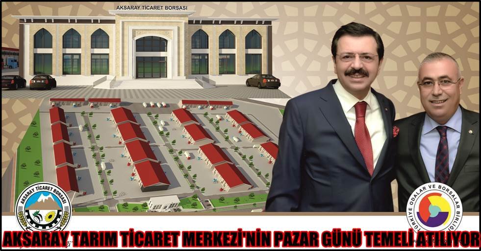 Modern Tarım Ticaret İhtisas Merkezinin Temel atma törenine Türkiye Odalar ve Borsalar Birliği (TOBB) Başkanı M. Rıfat Hisarcıklıoğlu katılacak. Pazar günü saat 18:30’da temeli atılacak olan Tarım Ticaret İhtisas Merkezi hakkında bilgi veren Ticaret Borsası Başkanı Hamit Özkök şu sözlere yer verdi; “Amacımız Aksaray’a son teknolojilerle donatılmış ve en modern Tarım Ticaret İhtisas Merkezini kazandırmaktır. Yeni Ticaret Borsası ve Tarım Ticaret İhtisas Merkezi Konya Yolu üzerinde yapılıyor. Aksaray’da birçok sektör alanında çalışan insanlarımız var. Burada en önemlisi başta hububatçılar olmak üzere gübreciler, yemciler, yağmurlama borusu ve su sistemleri satan esnaflarımız, tarım ilacı bayileri, nalburiye ve hırdavatçılar, eleme tesisleri, tohumcular ve değirmenciler burada yer alacak. Üyelerimizden gelen talepleri karşıladık. Üyelerimizden Allah razı olsun. Bizlere güvendiler, destek verdiler. Projemize inandılar. Bizim için bu çok önemli idi. Sayın Belediye Başkanımız Haluk Şahin Yazgı ‘Bu Proje Aksaray’ın Projesidir’ diyerek sahip çıktı. Kendisine çok teşekkür ediyorum. İnşaatımızın ihale süresi 500 iş günü olmasına karşın müteahhidimiz sağ olsun hızlı bir şekilde ilerliyor. Projemiz kapmasında binamızın yapılması ile birlikte Türkiye’nin en modern ve en teknolojik Ticaret Borsası ve Tarım Ticaret Merkezi’ne kavuşmuş olacağız. Ben inanıyorum ki bu merkezimiz ile Türkiye’ye örnek olacağız. Pazar günü saat 18:30 da Konya yolu üzerinde Türkiye Odalar ve Borsalar Birliği (TOBB) Başkanı M. Rıfat Hisarcıklıoğlu' nun da katılacağı Tarım Ticaret İhtisas Merkezimizi temel atma törenimize tüm halkımızı davet ediyorum. Bu duygu ve düşüncelerle projemizin Aksaray'ımıza hayırlı uğurlu olmasını diliyor, hepinize saygılar sunuyorum” dedi.