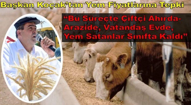 “Bu Süreçte Çiftçi Ahırda-Arazide, Vatandaş Evde, Yem Satanlar Sınıfta Kaldı” Son günlerde yaşanan sıkıntılı süreçte üretmeye devam eden çiftçinin yem fiyatları ile bir hayli zorluk çektiğini belirten Başkan Koçak " Vallahi anlamış değiliz, nasıl oluyor. Hammaddenin fiyatı artmazken yemlerin fiyatlarının artmasına bir türlü anlam veremiyoruz.