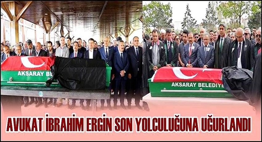 İbrahim Ergin´in cenazesi ikindi namazına müteakip kılınan cenaze namazının ardından Ervah Kabristanlığına defnedildi.Cenaze namazına Aksaray Valisi Ali Mantı,Türkiye Barolar Birliği Başkanı Metin Feyzioğlu,Belediye Başkanı Evren Dinçer,Aksaray Cumhuriyet Başsavcısı İbrahim Cansever,Adli Yargı Adalet Komisyonu Başkanı Seyfullah Sarıgül,Emniyet Müdürü Ali Karabağ,AÜ Rektörü Yusuf Şahin, AK Parti Aksaray İl Başkanı Hüseyin Altınsoy,MHP İl Başkanı Mustafa Çölkesen Aksaray Baro Başkanı Ramazan Erhan Toprak,diğer illerden çok sayıda Baro Başkanı,avukatlar,ailesi ve yakınları katıldı.İbrahim Ergin gözyaşları arasında dualarla toprağa verildi.