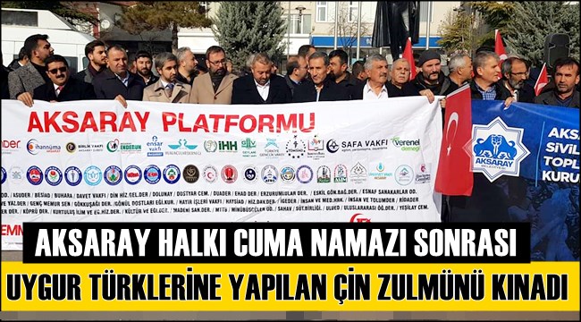 Aksaray sivil toplun örgütleri Doğu Türkistanda yapılan zulme Aksaray'da sessiz kalmadılar. Aksaray'da düzenlenen miting ile Bu zulüm kınandı.