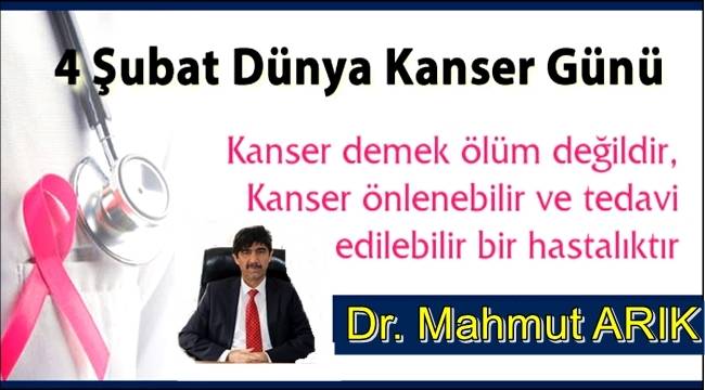 “Dünya Kanser Günü” her yıl 4 Şubat Günü Kanser ile ilgili farkındalık ve bilinç düzeyinin artmasını sağlamak, kansere karşı mücadelede önemli bir adım olan doğru bilinen yanlışlardan kurtulmak ve doğruların herkese ulaşmasını hedeflemek amacıyla dünya genelinde kutlanmaktadır. Bireyler ve toplumlar, yaygın kanser türlerinin en az üçte birinin daha sağlıklı bir beslenme biçiminin seçilmesi, tütün ürünlerinden uzak durulması, fiziksel aktivitenin arttırılması ve alkol kullanımının azaltılması ile önlenebileceği konusunda bilgilendirilmelidir. Ayrıca ultraviyole radyasyondan korunma, mesleksel ve çevresel maruziyetlerin önüne geçilmesi ile kanser yükü daha da aza indirgenecektir.