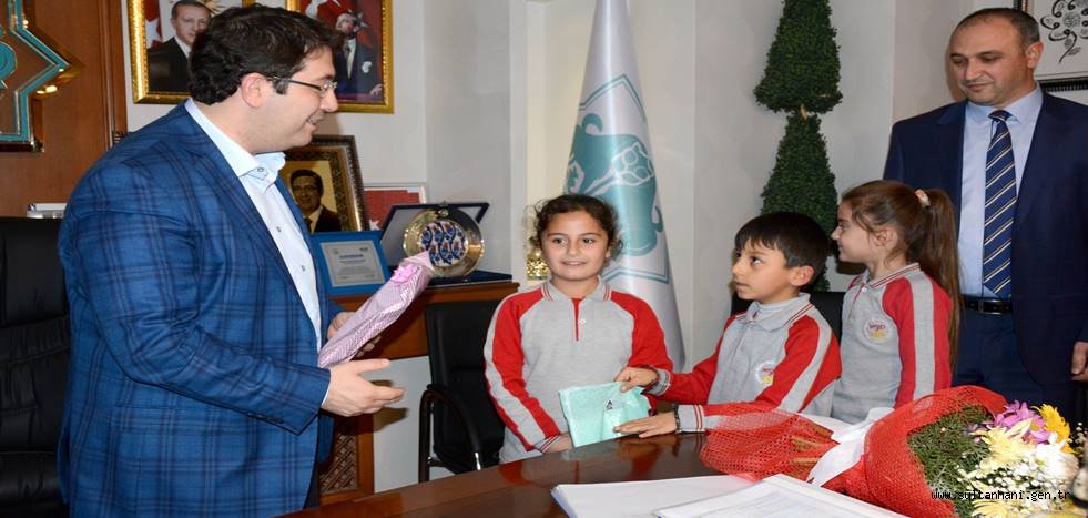Meliha Zekai Dalkılıç İlkokulu idarecileri ve bir grup öğrenci Belediye Başkanı Haluk Şahin Yazgı’nın geçtiğimiz günlerde okuldaki tüm öğrencileri ziyaret ederek eğitimle ilgili kitaplar ve çeşitli hediyeler vermesinden dolayı çok büyük mutluluk duyduklarını belirterek, Başkanın bu jestine karşılık öğrencilerde kendi elleri ile hazırladıkları çeşitli hediyeleri Başkan Yazgı’ya takdim ettiler. Başkan Yazgı, okul idarecilerine ve küçük öğrencilere teşekkür etti.