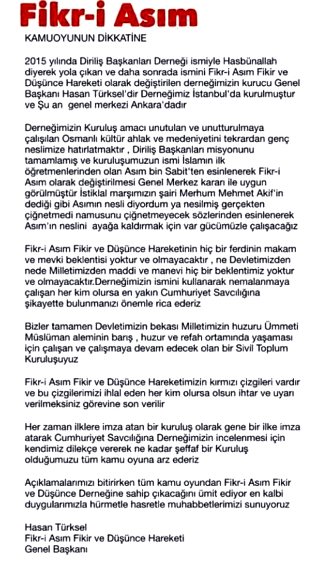 FİKR-İ ASIM FİKİR ve DÜŞÜNCE DERNEĞİ AKSARAY ŞUBESİ AÇILDI Aksaray Fikr-i Asım il başkanı Metin Yıldırım Konuya ilişkin yaptığı açıklamada... FİKR-İ ASIM FİKİR ve DÜŞÜNCE DERNEĞİ AKSARAY ŞUBESİ AÇILDI Aksaray Fikr-i Asım il başkanı Metin Yıldırım Konuya ilişkin yaptığı açıklamada... PaylaşTweetleGooglePaylaş Paylaş Tweetle Paylaş Paylaş 07 Ağustos 2017 - 12:17