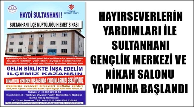 HAYIRSEVERLERİN YARDIMLARI İLE SULTANHANI GENÇLİK MERKEZİ VE NİKAH SALONU YAPIMINA BAŞLANDI
