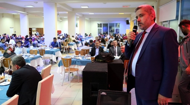 ASÜ ailesi her yıl olduğu gibi bu yılda geleneksel iftar sofrasında bir araya geldi. Sosyal Tesislerde düzenlenen iftar yemeği öncesinde akademik ve idari personeli kapıda karşılayan, kısaca hasbihal eden ve çocuklarla özel olarak ilgilenen Rektör Şahin, Ramazan’ın bir araya getiren ve kaynaştıran özelliğine vurgu yaparak, “Sağlık, sıhhat içerisinde hep birlikte bir Ramazan’a daha kavuştuk. Bunun için Allah’a şükürler olsun. Davetimizi kırmayıp geldiğiniz için de hepinize çok teşekkür ederiz” dedi. Büyük bir aile olan ASÜ’nün her ferdinin kendileri için çok kıymetli olduğunu kaydeden Rektör Şahin, “ASÜ’de ortaya iyi işler çıkıyorsa bunu hep birlikte başarıyoruz. Tek başına bir şey yapmadığımızın ve yapamayacağımızın farkındayız. Sizlerle birlikte çalışıyoruz, başarıyoruz ve bundan büyük bir mutluluk duyuyoruz. İyi ki varsınız” şeklinde konuştu. Sağlık, aile huzuru ve iş başarısı sıralamasını değerli bulduklarını da ifade eden Şahin, “Sağlığımız sıhhatimiz yerindeyse ailede huzurumuz olur, aile huzurumuz varsa iş başarısı gelir. Allah huzurumuzu arttırsın ve birlikte daha güzel işler yapma imkânı nasip etsin” dedi.