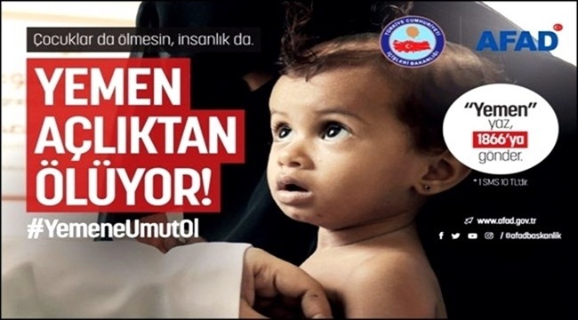 İçişleri Bakanlığı Afet Acil Durum Yönetimi Başkanlığı tarafından bu insani drama karşı yardım kampanyası başlatılmıştır. GSM operatörlerinden Yemen yazıp 1866'ya göndererek 10 TL, www.afad.gov.tr web sayfasından ya da bankalardaki bağış ekranlarından AFAD Yemen hesaplarını seçerek arzu edilen tutarda bağış yapılabilir veya bankaların açmış oldukları hesap numaralarına bağış yapılabilir.