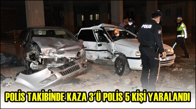 POLİSTEN KAÇAN OTOMOBİL KAZA YAPTI 3'Ü POLİS 5 KİŞİ YARALANDI