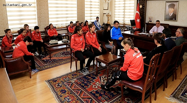 Türkiye Bayan Futbol 3.Liginde şampiyon olarak 2. Lige yükselen Hasan Dağı Bayan Futbol Takımı Vali Aykut Pekmez’i ziyaret etti.