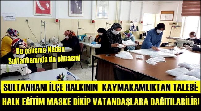 Sultanhanı ilçe Halkı "Haber kanallarında ve Yerel medyada Birçok iil ve ilçe Belediyesi ve Kaymakamlığın Halk eğitim Müdürlüğündeki dikiş Kursiyerlerinin Maske üretimi yaptığını ve Bu maskelerin de Vatandaşlara dağıtıldığını belirterek Sultanhanı ilçe Kaymakamımızdan isteğimiz ilçe mizde de bu şekilde bir çalışma yapılması" dediler.