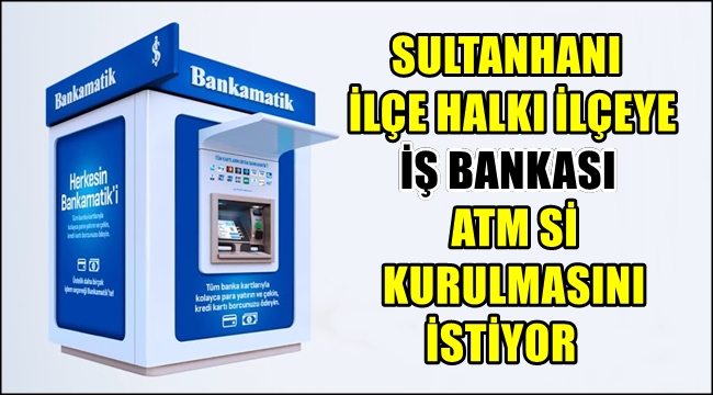 Sultanhanı ilçesindeki Esnaf ve vatandaşlar İlçeye İş Bankası ATM si kurulmasını istiyorlar. İş bankasından Maaş alan ve hesabı bulunan Esnaf ve Vatandaşlar ilçede iş bankası Şube ve ATM si bulunmadığını belirterek "Sultanhanı ilçemiz 10 bin den fazla nüfusu olan bir ilçeyiz birçok esnaf ve Vatandaş İşbankasından Maaş almakta ve hesabı bulunmakta birçok kez İlçeye enazından bir ATM Kurulması konusunda taleplerde bulunduk fakat bir sonuç alamakadık, ilçede Yüzlerce müşterisi olan bir banka olan İş  Bankasının Sultanhanı ilçemize ATM Krurulumu yapmasını talep ediyoruz banka müşterileri olarak bu konunun takipçisi olmaya devam edeceğiz gerekirse Ulusal basına da bu talebimizi taşırız yüzlerce Müşterisi olan bir ilçenin talebine umarız İş Bankası yetkilileri duyarsız kalmaz" dediler.