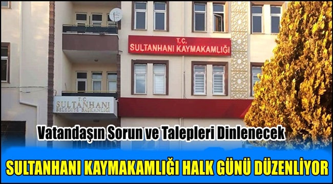 Sultanhanı Kaymakamlığından Konuya ilişkin yapılan açıklamada; "Sayın Kaymakamımız Başkanlığında 26.01.2021 günü Saat 14:00 da Kaymakamlık Makamında "Halk Günü" toplantısı yapılacaktır. Toplantıya katılmak isteyen vatandaşlarımız Kaymakamlığımıza 0382 242 26 75 numaradan ulaşabilir veya kaymakamlığa müracaat edebilirler." denildi.