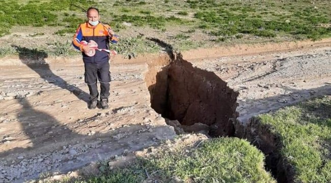 Sultanhanı ilçesi sınırları içerisinde çökme ve yarımalar oluştu obrugun uzunluğu dikkat çekti. ilçe de olulan yarılma ve çökme olayını yerinde incelemek üzere Aksaray il afet ve acil yardım müdürlügü ekipleri inceleme de bulundu .