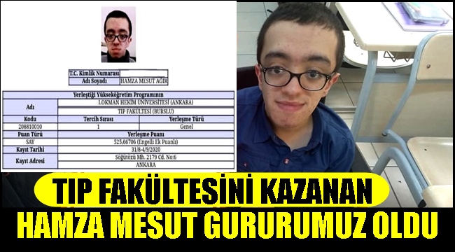 Üniversitesi sınavlarına giren ve Geçtiğimiz gün açıklanan Yerleştirme Sınavı sonuçlarına göre Tıp Fakültesini kazanan Hamza Mesut Ağır Bizleri birkez daha gurulandırdı.
