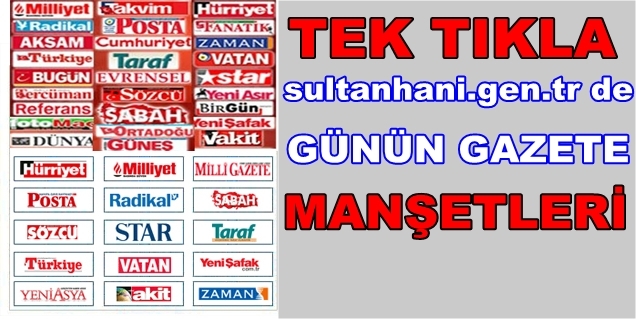 Tek tıkla sultanhani.gen.tr ve sultanhanı.com sitesinde Günün Seçme Gazetelerini Günlük olarak okuya bilirsiniz...