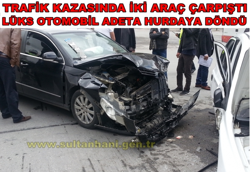 Konya'da 2 otomobil çarpıştı. 4 kişinin yaralandığı kazada lüks otomobil adeta hurdaya döndü.