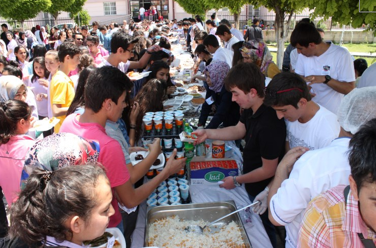 301 madencimizin ailesine bir nebze olsun yardımcı olabilmek, onların acısını paylaşmak amacıyla öğrencilerin, öğretmenlerin ve velilerin omuz omuza vererek düzenledikleri kermesten elde edilen gelirlerin Soma’ya gönderileceği ifade edildi. Ev yapımı pasta, börek ve tatlılar satışa sunulduğu kermese öğrenciler büyük ilgi gösterirken kermeste görevli öğrenciler canla başla çalıştılar.